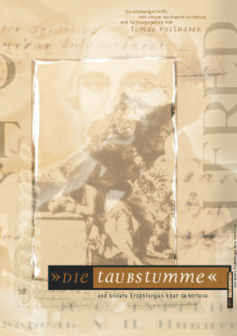 Die Taubstumme und andere Geschichten über GehörloseDieses Buch enthält Erzählungen aus dem 19. und 20. Jahrhundert, die eines gemeinsam haben: die Helden der Erzählungen sind gehörlos bis auf eine Ausnahme, deren Helden taub-blind sind. Texte u.a. von Alfred de Musset, Charles Dickens, Iwan Turgenjew, Guy de Maupassant, William Faulkner, Bernard Malamud und Hannah Green erzählen Geschichten tragischer und komischer, geheimnisvoller und erschreckender, märchenhafter und gespenstischer Ereignisse, in denen die zauberhafte Camilla und die verwahrloste Sophy, der bärenstarke Gerassim und Goldberg, der Clown, der Mörder Gargan und die reiselustige Maria Wassiljewna, der wilde Joe und die verführerische Unbekannte verwickelt sind. In einem Nachwort versucht der Herausgeber eine Antwort auf die Frage zu geben, welche Vorstellungen, Träume und Ängste hörende Autoren bei der Erschaffung ihrer gehörlosen Helden bewegen, und wie diese in die Texte eingeflossen sind. Die Leser dieses Sammelwerks finden spannende und unterhaltsame, philosophische und mythische Geschichten, die keinen, ob gehörlos oder hörend, unberührt lassen. Vollhaber, Tomas (Hg.): Die Taubstumme und andere Geschichten über Gehörlose. Broschur / Paperback, 376 Seiten, Signum 1998, ISBN 3-927731-64-1. EUR 24,50 |