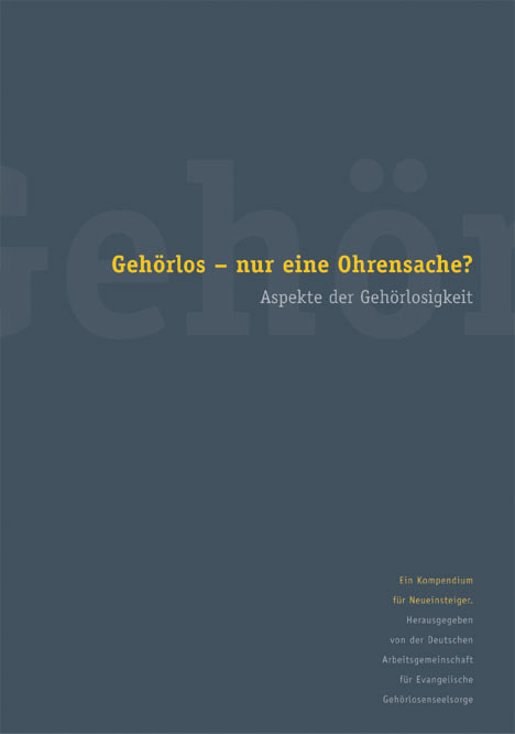 Gehörlos - Nur eine Ohrensache?Aspekte der GehörlosigkeitDeutsche Arbeitsgemeinschaft für Evangelische Gehörlosenseelsorge e.V. (Hg.): Gehörlos - Nur eine Ohrensache? Aspekte der Gehörlosigkeit. Broschur / Paperback, 240 Seiten, Signum 2., überarb. Aufl.2001, ISBN 3-927731-87-0. EUR 9,00 Dieses Buch erweitert die Zielsetzung der ersten Auflage, nämlich "Neueinsteigern in die Gehörlosenarbeit den Anfang Ihres Wirkens zu erleichtern", in Richtung eines allgemeinen und umfassenden, deswegen aber auch jeweils knappen Einblicks in die Welt der Gehörlosen aus verschiedenen Perspektiven. Es behandelt u.a. die Gehörlosengeschichte, die Arbeit von Gehörlosenverbänden, aber auch medizinische, kulturelle sowie seelsorgerische Aspekte der Gehörlosigkeit. Durch seinen Aufbau eignet sich dieser Titel gut für eine erste Annäherung an die Thematik. |