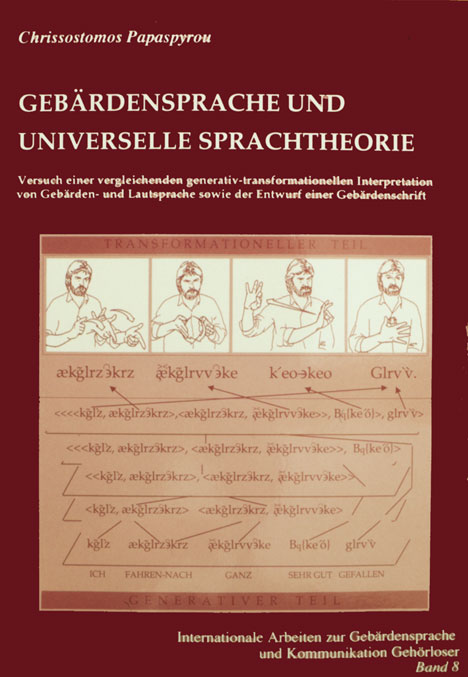 Gebärdensprache und universelle SprachtheorieErst über eine Re-Konstruktion der Sprache in Schrift entsteht Sprachbewußtsein; der Sprachbenutzer dringt in die Architektonik seiner Sprache ein. Vor diesem Hintergrund wird im ersten Teil der Untersuchung ein originelles Schriftsystem für die Gebärdensprache entworfen, das sich des lateinischen Alphabets bedient. Darauf wird der komplexe Versuch unternommen, das Modell für eine universelle Sprachtheorie unter Berücksichtigung sowohl der Gebärdensprache, als auch der Lautsprache zu entwerfen. Zur empirischen Überprüfung dieses sprachtheoretischen Modells werden einerseits die Deutsche Gebärdensprache und andererseits die Altchinesische, Altgriechische und Japanische Lautsprache, sowie die Lautsprachen der nordamerikanischen Indianer beispielhaft dargestellt. Bei der Darstellung der Deutschen Gebärdensprache kommt das in den ersten Kapiteln ausgearbeitete Schriftsystem zur praktischen Anwendung. Die detaillierte Analyse der Gebärdensprache im Vergleich zu Lautsprachen eröffnet eine völlig neue Perspektive auf den Ursprung von Sprache und ihre Bedeutung für Denken und Erkennen. Papaspyrou, Chrissostomos : Gebärdensprache und universelle Sprachtheorie. Vergleichende generativ-transformationelle Interpretation von Gebärden- und Lautsprache sowie Entwurf einer Gebärdenschrift. Broschur / Paperback, 344 Seiten, Signum 1990, ISBN 978-3-927731-07-3. EUR 23,00 |