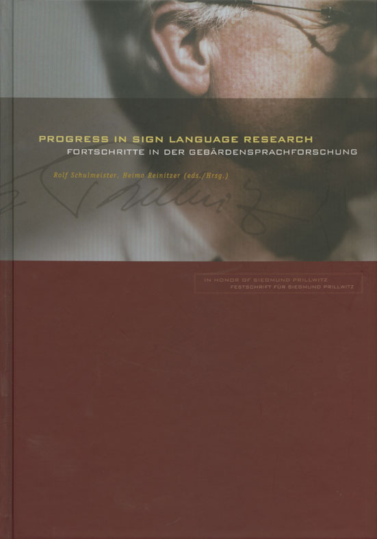Progress in Sign Language Research / Fortschritte in der Gebärdensprachforschung.In Honor of Siegmund Prillwitz / Festschrift für Siegmund PrillwitzTo celebrate the 60th birthday of Siegmund Prillwitz, founder of the Institute for German Sign Language at Hamburg University, and to honour his thirty years of commitment in the field of sign language research, sixteen renowned researchers and research teams from all over the world have published a Festschrift titled "Fortschritte in der Gebärdensprachforschung Festschrift für Siegmund Prillwitz / Progress in Sign Language Research In Honor of Siegmund Prillwitz". The list of contributors is ample evidence of Siegmund Prillwitz' high standing in the international research community: Zur Feier des 60. Geburtstags von Siegmund Prillwitz, dem Gründer des Instituts für Deutsche Gebärdensprache der Universität Hamburg, haben sechzehn namhafte Forscher und Forschergruppen aus aller Welt eine Festschrift unter dem Titel Fortschritte in der Gebärdensprachforschung - Festschrift für Siegmund Prillwitz / Progress in Sign Language Research - In Honor of Siegmund Prillwitz" veröffentlicht, mit der sie den Jubilar für sein dreißigjähriges Engagement auf dem Gebiet der Gebärdensprache ehren wollen. Die Liste der Autoren macht deutlich, welch großes Ansehen Siegmund Prillwitz in der internationalen Forschungsgemeinschaft genießt: Harlan Lane, Carol Padden, Sherman Wilcox, Philip M. Prinz, Dan I. Slobin und Ronnie Wilbur aus den USA, Adam Schembri aus Australien, Bencie Woll und Jim Kyle aus England, Nini Hoiting aus den Niederlanden, Penny Boyes-Braem aus der Schweiz, Elena Pizzuto und Virginia Volterra aus Italien, Elisabeth Engberg-Pedersen aus Dänemark, Franz Dotter aus Österreich, Chrissostomos Papaspyrou aus Griechenland, Renate Fischer, Thomas Hanke und Hubert Wudtke aus Deutschland. Der Band verdankt seinen Doppeltitel in Deutsch und Englisch der Tatsache, dass dreizehn der sechzehn Aufsätze in Englisch und nur drei in Deutsch verfaßt wurden. Die Beiträge der Festschrift behandeln historische Themen zur Geschichte der Gebärdensprachgemeinschaften, linguistische Analysen zur Gebärdensprachforschung und pädagogische Erkenntnisse aus Erziehung und Ausbildung. Entsprechend der Herkunft der Autoren beziehen sich die Beiträge auf mehrere europäische und außereuropäische Gebärdensprachen, in vielen Fällen sogar mehrere Sprachen vergleichend, wobei es den Autoren durchweg gelingt, die wichtigen allgemeinen linguistischen Aspekte heraus zu arbeiten. Rolf Schulmeister und Heimo Reinitzer (eds./Hrsg.): Progress in Sign Language Research / Fortschritte in der Gebärdensprachforschung. In Honor of Siegmund Prillwitz / Festschrift für Siegmund Prillwitz. Geb./Hardcover, 336 Seiten, Signum 2002, ISBN 978-3-927731-90-5. EUR 28,00 |