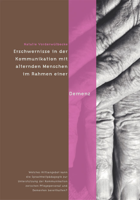 Natalie Vorderwülbecke: Erschwernisse in der Kommunikation mit alternden Menschen im Rahmen einer Demenz - Welches Hilfsangebot kann die Sprachheilpädagogik zur Unterstützung der Kommunikation zwischen Pflegepersonal und Dementen bereithalten? Broschur, viii, 113 Seiten, Signum 2005, ISBN 978-3-936675-02-3, EUR 23,00