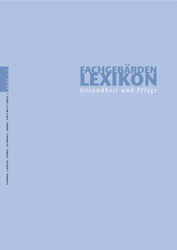 Fachgebärdenlexikon Gesundheit und PflegeDas Fachgebärdenlexikon Gesundheit und Pflege bietet für über 1000 Fachbegriffe, die in den verschiedenen Gesundheits- und Pflegeberufen grundlegend sind, Übersetzungen in die Deutsche Gebärdensprache (DGS) und stellt damit einen wichtigen Beitrag zur Förderung der beruflichen Bildung Hörgeschädigter dar. Neben Ausbildungsinhalten wurden bei der Auswahl der Fachbegriffe die Bedürfnisse von Gehörlosen und Gebärdensprachdolmetschern berücksichtigt, um zu einem besseren Verständnis Gehörloser für gesundheitliche Zusammenhänge und zu einer gelingenden Arzt-Patient-Kommunikation beizutragen. Konrad, Reiner und Gabriele Langer, Susanne König, Arvid Schwarz, Thomas Hanke, Siegmund Prillwitz: Fachgebärdenlexikon Gesundheit und Pflege. Geb. / Hardcover, 2 Bde., 1556 Seiten, Signum 2007, ISBN 978-3-936675-23-8. EUR 55,00 Beachten Sie ergänzend hierzu: Konrad, Reiner und Gabriele Langer, Susanne König, Arvid Schwarz, Thomas Hanke, Siegmund Prillwitz (Hrsg.): Fachgebärdenlexikon Gesundheit und Pflege. DVD-Video. ISBN 978-3-936675-25-2. EUR 19,50 Konrad, Reiner und Gabriele Langer, Susanne König, Arvid Schwarz, Thomas Hanke, Siegmund Prillwitz (Hrsg.): Fachgebärdenlexikon Gesundheit und Pflege. DVD-ROM. ISBN 978-3-936675-24-5. EUR 24,50 |