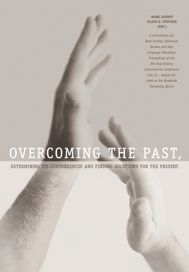 Mark Zaurov & Klaus-B. Günther (Eds.): Overcoming the Past, Determining its Consequences and Finding Solutions for the Present. A contribution for Deaf Studies and Sign Language Education. Proceedings of the 6th Deaf History International Conference July 31 - August 04, 2006 at the Humbold University, Berlin. Paperback, 344 pp, Signum 2009, ISBN 978-3-936675-28-3. EUR 40,00